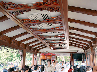 西湖には3つの小さな人工で造られた島があり、そのひとつに遊覧船で行ってみる。その島は小瀛洲という名で、西湖十景の1つ「三潭印月」に由来している島で三潭印月島とも呼ばれている。