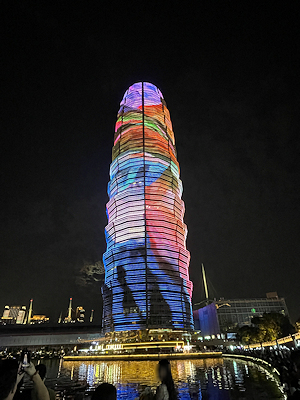 夜にはビル全体がライトアップされます。(ライトアップは週末や祝日前だけかもしれません。)