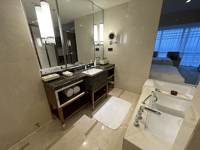 | バスルーム トイレとシャワーブースは バスルーム内にありますが それぞれガラスの扉があり独立しています ベッドルームとの仕切りは バスルームもゆったりした造りです |