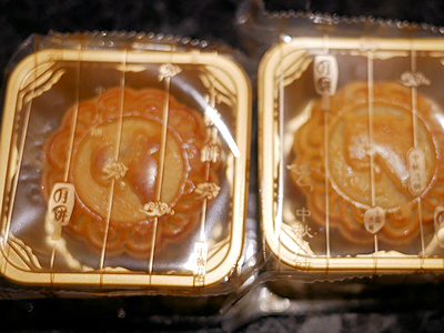 前に乗った時は機内で食べ物は配られなかったような記憶があるのですが、今回は中秋節なので月餅が配られました。 中秋節には月餅を食べる慣わしがあります。 |