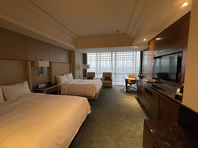 鄭州の前半に泊まるJWマリオット・ホテル 鄭州では「エグゼクティブルーム, クラブラウンジ, 客室, 2 ダブル」というカテゴリーの部屋に宿泊する。