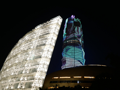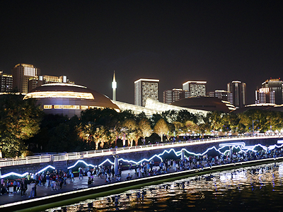 | 手前の光っている壁やその奥の金色の建物河南芸術中心(河南芸術センター) |
