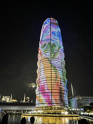その後ドローンは戻ってこなかったので部屋に戻ることにしたのだけれど、会社名が表示される前にドローンショーの本編があったのに気が付かなかったということはないような気がするので(見えない位置にいた可能性はなくもないけど)、この時行われていたライトアップかイベントの提供各社の紹介がドローンで行われたものだったのかもしれないし、この後の国慶節で行われるドローンショーのリハーサルの一部だったのかもしれない。(分からずじまいです。)