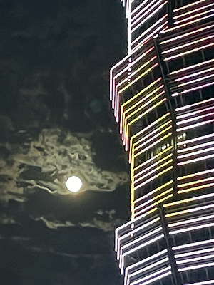 この日は中秋節 雲の多い日でしたが 時々雲の間に月が見えました |