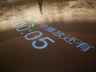 この展示室では床に映像が映されるのだけれど次の上映までの時間がカウントダウンされています。 これは便利でした。 |