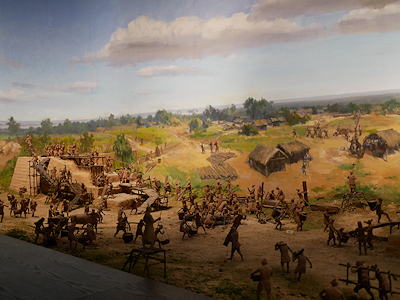 先程の展示室の先の一層下には商の都を復元した 大きな模型がありました。吹抜けで見下ろせるようになっています。