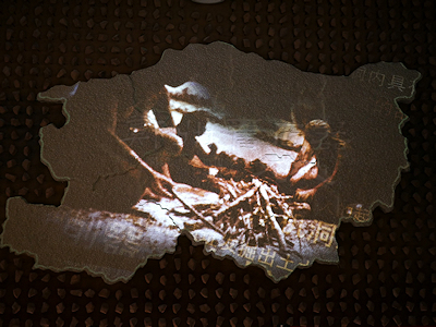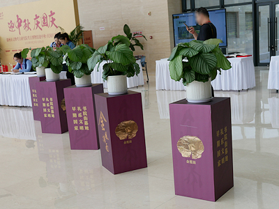 植木を置く台にも金覆面のラッピング 大発見感がすごいです。この先は一般の見学者は入れないエリアだったと思います。 会期前だったのかな…。 |