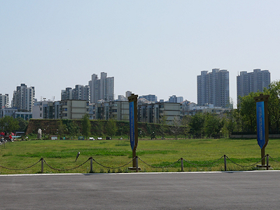 タクシーですぐ横を通りました 商の時代の城壁です |