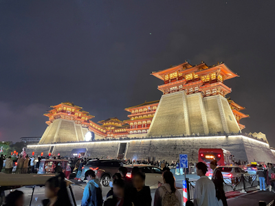 隋唐洛陽城国家遺跡公園内のプロジェクションマッピングは、応天門遺跡博物館の明堂・天堂側の壁に上映されるので、そちらの広場へ向かった。