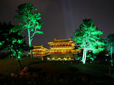 | 楼閣からもライトで照らされてすごいことになってます。 |