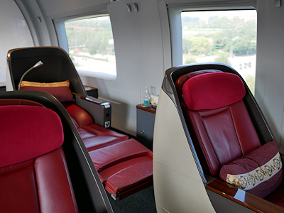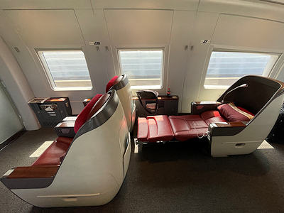 少し前の旅行で高速鉄道を利用した際、自分たちの乗っていた席の後ろに商務(ビジネス)席の車両があるということを知り、一度乗ってみたいなと思っていたのだけれど、当然料金は高いので今回の旅行でも手を出さなかった。