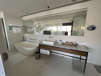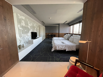 バスルームはジャン・ヌーベルが設計したウィーンのホテルを参考にしたのかな?と私は思ったのだけれど(夫は全然違うと言っていたけれど)、部屋は本当に広かったのだけれどなんとも不思議な間取りでデッドスペースが多い感じだった。