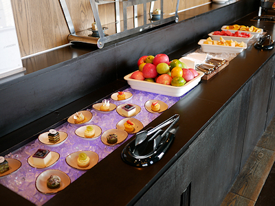 まだ誰もいなかったのでブッフェ台の写真を。 |