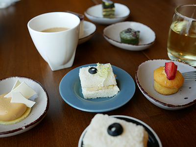 プチケーキにサンドウィッチ 昼食をとったばかりとは思えない数ですが