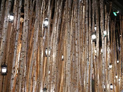 これは何だったかな… どこか建物内だけれど白樺の木々です |