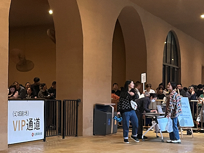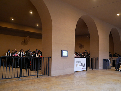 どうしたものやら…と呆然としていたら、入場待ちの列の柵の所に「VIP通道」という看板があり、その横に小さな販売カウンターのようなものが出ているのに気が付いた。