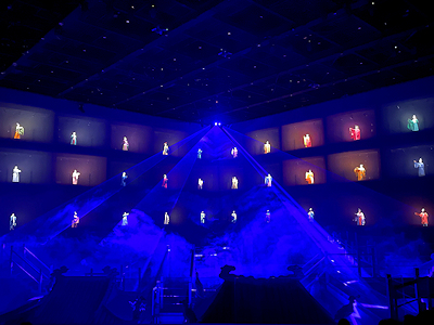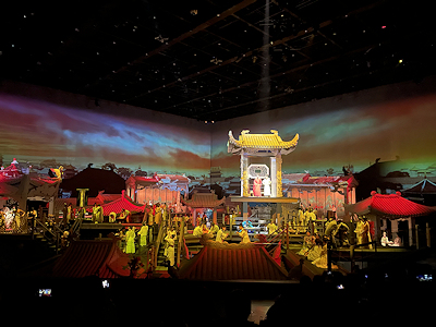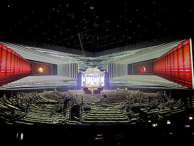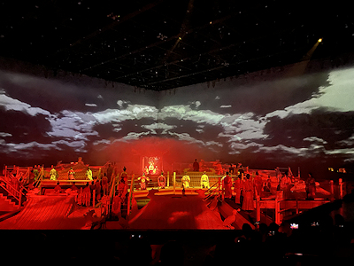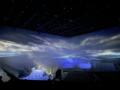 「只有河南・戯劇幻城」の3つある大劇場のうちの1つ「幻城劇場」は、3000人を収容する大規模な劇場なのだけれど、開演時にはほぼ満席になっていた。 この劇場で演じられるのは、数千年の歴史がある河南のこの場所の下には古代の町が眠っているといった歴史の積み重ねをテーマにした演目のようだった。 舞台のセットも大掛かりで、とても幻想的な雰囲気だったのだけれど、唐代(だと思う)の偉い人とお付きの人が現代にタイムスリップしてきたかのようなシーンもあり(多分)、笑いも散りばめられた演出で言葉が分からないけれど楽しめる内容だった。