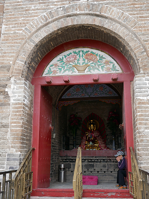 この塔も鉄塔と同じく黄河の氾濫により基壇が地中に埋まってしまっているし、戦火や災害での被害の後の修復工事で、元の時代には7層、明の時代には3層になっている。