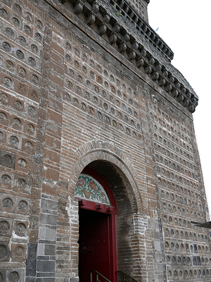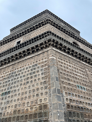繫塔もレンガ造 こちらも仏像が刻まれた仏像塼(塼仏)で覆われています |