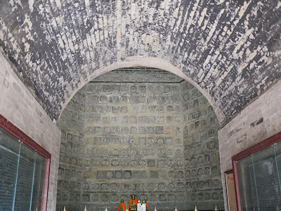 | その奥の空間は外壁と同じく仏像塼(塼仏)で覆われています |