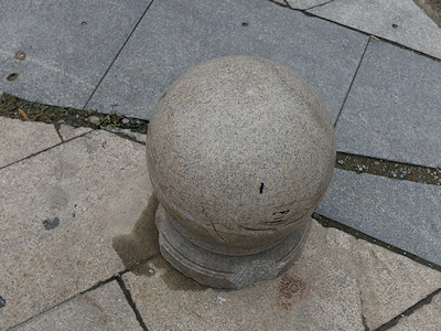 | 中国でよく見かける車止めの丸い石です |