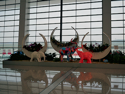 空港ロビーの象のオブジェ