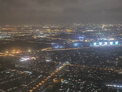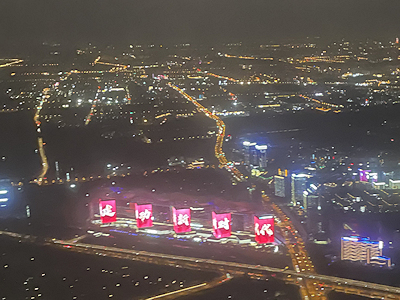 右端に写っているのは虹橋空港が近づいてくると見えるLEDで派手にライトアップされている5棟の高層ビル