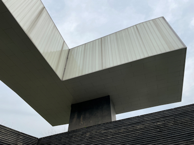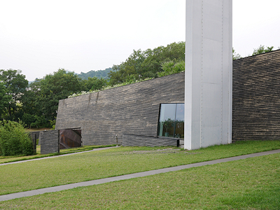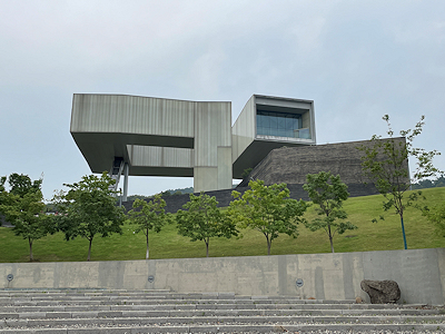 展示を見た後は次の建物に移動しつつ、もう一度外からスティーヴン・ホール設計の建物(四方当代美術館)を眺めてみる。
