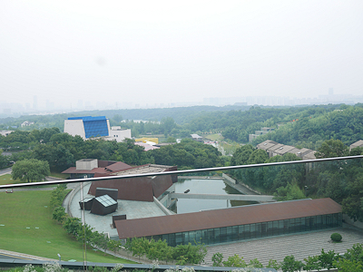 敷地内に建つカンファレンスセンターが見えます 磯崎新さんの設計です |