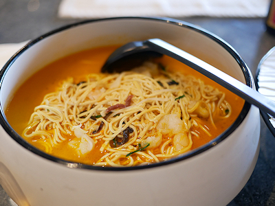 頼んだお料理はメニューの文字からイメージしたものとちょっと違うものもあったけれど(こんなにがっつり麺っぽい料理が2つとは思っていなかった…)、ホテルのレストランだけあって上品な味付けで美味しくいただくことができた。