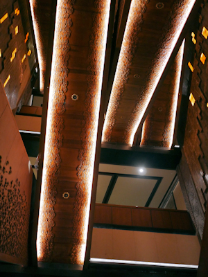 下から見上げた 地下へ降りていくエスカレーターなかなか重厚ですが