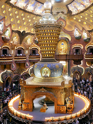 様々な展示がある小さな部屋や何体もの仏像が並び煌びやかな装飾が施された廊下を見学した後は仏頂宮の一番の見所である千仏殿という大空間を見学する。 ここは「仏頭頂真骨(仏祖頭頂舎利)」を奉納するための舎利聖塔を中心にした煌びやかな大空間だった。