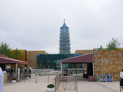 この塔は「世界七大奇跡」の1つとしてあげられていた大報恩寺の瑠璃塔をいわゆる再現ではなく、さらに珍しい姿で再建した塔のようだ(こういう場合は再建とは言わないのかな)。