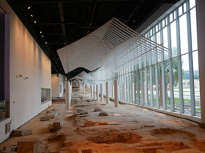 遺跡公園の敷地のど真ん中にものすごく近未来(⁉)な塔が建っていて実に興味深いのだけれど、先に手前にある展示館を見学する。