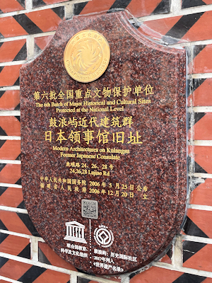 旧日本領事館 この案内が貼ってある壁のレンガには 黒い斜めの線が入っています