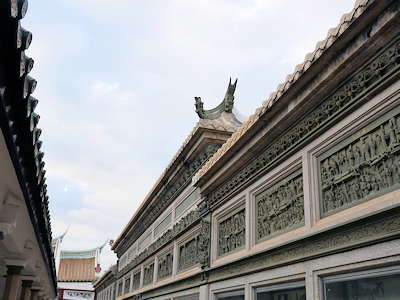 この集美地区には学校の他、陳嘉庚の記念館、鰲園という陳嘉庚の造った公園、陳嘉庚の生家、墓などがあり、中国東南地方の伝統的な建築も多く建っている。