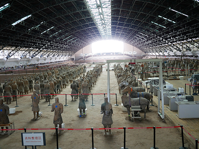 兵馬俑は様々な墓陵から発掘されているのだけれど、西安市にある秦の始皇帝陵から発掘された兵馬俑がその最高峰といわれている。