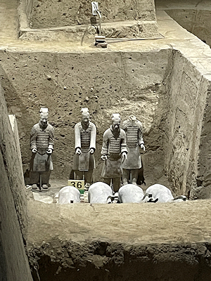 これは20世紀最大の発見ともいわれ、現在までに合計8000点の俑が発見されていて、現在も慎重に発掘調査が進められている。