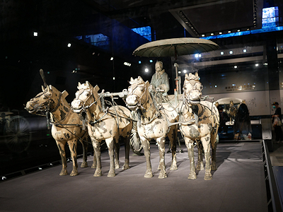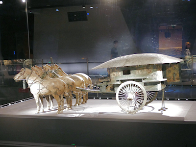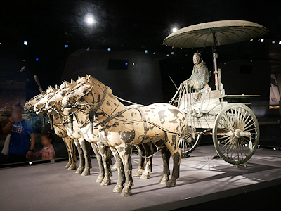 1980年に始皇帝陵の丘から西に20メートル離れた副葬坑から大きな銅車馬2台が発見された。この2台の銅車馬は実物の1/2程の大きさで、始皇帝が実際に使っていた馬車を模したものと考えられている。