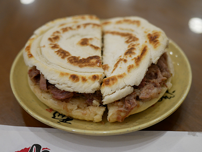 ビャンビャン麺は陝西省の名物料理だけあって、西安市内のレストランでもビャンビャン麺の看板を掲げているお店が多かったし、宿泊しているホテルの朝食会場でもビャンビャン麺コーナーがあった。 ということでかなりの期待度で食べたのだけれど、私は辛いものがとても苦手なのでじっくり味わうことは出来ず「こんな感じか」といった感想になってしまった。(辛いものがダメな私にとっては陝西省名物ならこのお店で食べたロージャーモーのほうが口に合いました。)