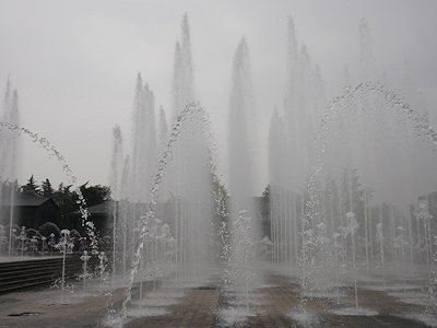 雨も本降りになってきて 雨なのか噴水の水なのか分からない感じでしたが