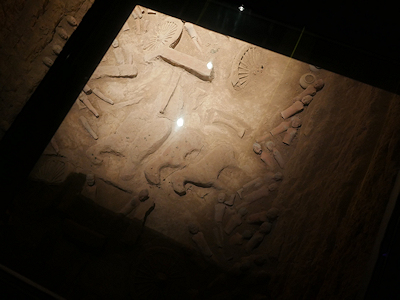 初めにこの地下の博物館を見学する。 入口で靴カバーをつけて入場する。