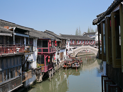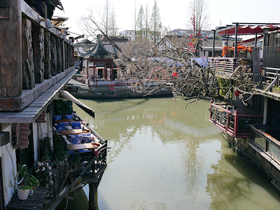 ホテルからタクシーで朱家角古鎮の入口へ向かった。