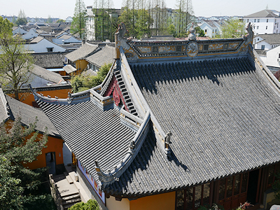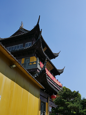 こちらのお寺は入口にあった案内によると1341年にこの地に建てられ、1573年に再建されたものなのだそう。この周辺の江南地域でよくみられる建築様式で建てられた建物が点在している。 入ってすぐの所に建っている鐘楼に上がってみることにした。