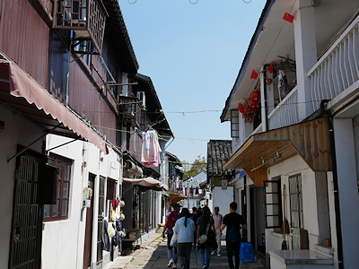 12時近くになってきたので古鎮の見学はこのくらいにして、休憩がてらお茶にすることにした。(この日は朝ゆっくりたっぷり食べていたこともありまだお腹は空いていなかったので、昼食は2時にホテルをチェックアウトした後に食べることにしていた。) お昼前になって人も多くなってきたので、混んでいる古鎮の中心地にあるカフェではなく少しだけ町外れに向かって歩いてみた。