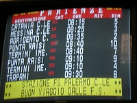 ... | 駅では、また往復のチケットを購入した。 まだ少し時間があったので、トイレに寄ろうと思ったのだけれど、パレルモ駅のトイレは有料トイレだったので、列車のトイレに行くことにし、そのままホームへと向かった。 私達が乗る列車の車両は、前日に乗った車両より古そうな車両で、座席はシミだらけだった。 |