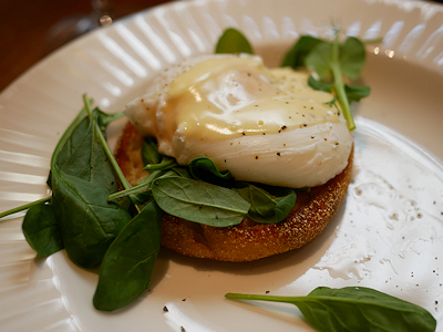 エッグベネディクトは注文して作ってもらうのではなく、オープンキッチンの卵コーナーで、係りの人が作ってお皿に1つずつセットした状態で置いていました 最初、ルームサービスか何かで注文されたものを作っているのかな?と見ていたのですが、作っていた係りの人に聞いたら自由に取っていいと言われたので出来たてホヤホヤを1つ頂きました |