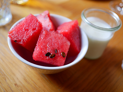 | 欧州のホテルでは珍しく(私の印象ですが)スイカがありました |
