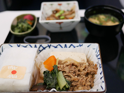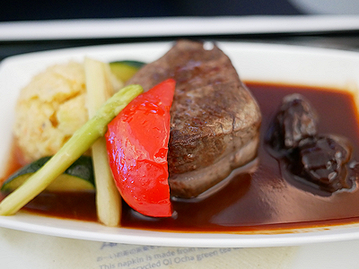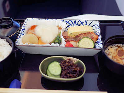 その後も映画をみてはフライトマップで残りの飛行時間を確認しがっかりする…というのを繰り返し、やっと「到着前のお食事」の時間になった。