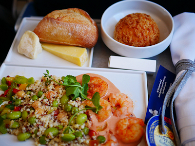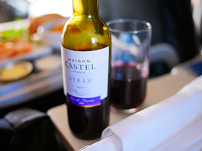 出発地のパリと到着地のヘルシンキには1時間の時差があり、チケット上の飛行時間は2時間10分となっている。 このような近距離便だけれどビジネスクラスなのでちゃんとした食事が配られた。